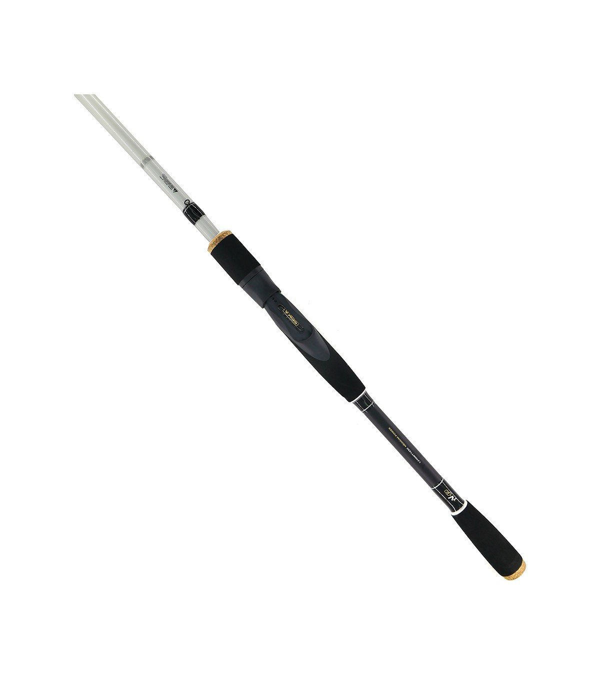 Su diseño combina corcho y goma EVA, aportando una estética elegante y un agarre cómodo incluso en largas jornadas de pesca.