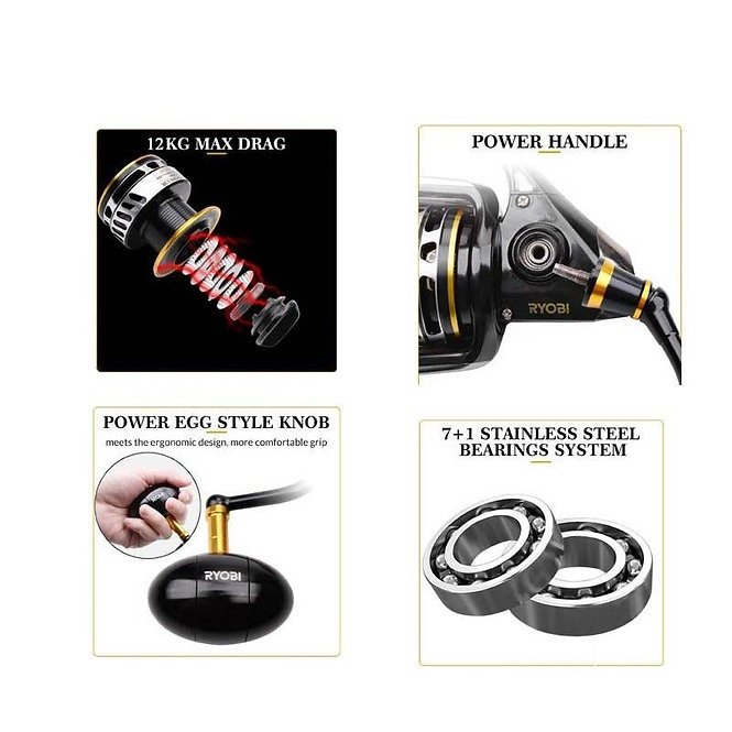 Carrete Ryobi AP Power SW Strong 10000, cuerpo metálico y freno 12 kg. Potente y versátil para múltiples modalidades de pesca.