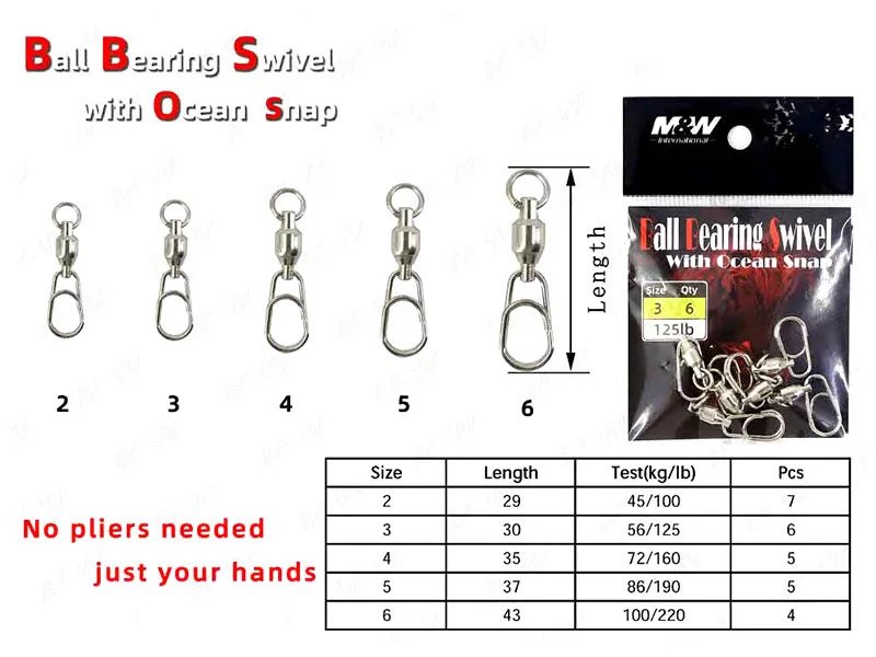 El Emerillón M&W con Ocean Snap ofrece máxima resistencia, durabilidad y facilidad de uso. Fabricado en acero inoxidable de alta calidad, es ideal para montajes de pesca exigentes sin necesidad de alicates.