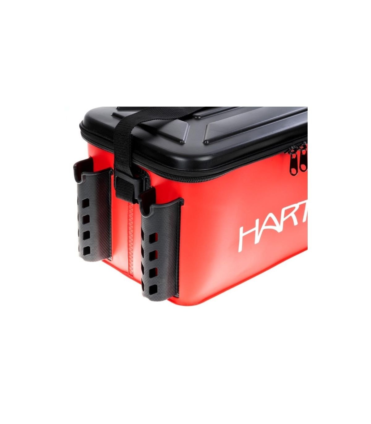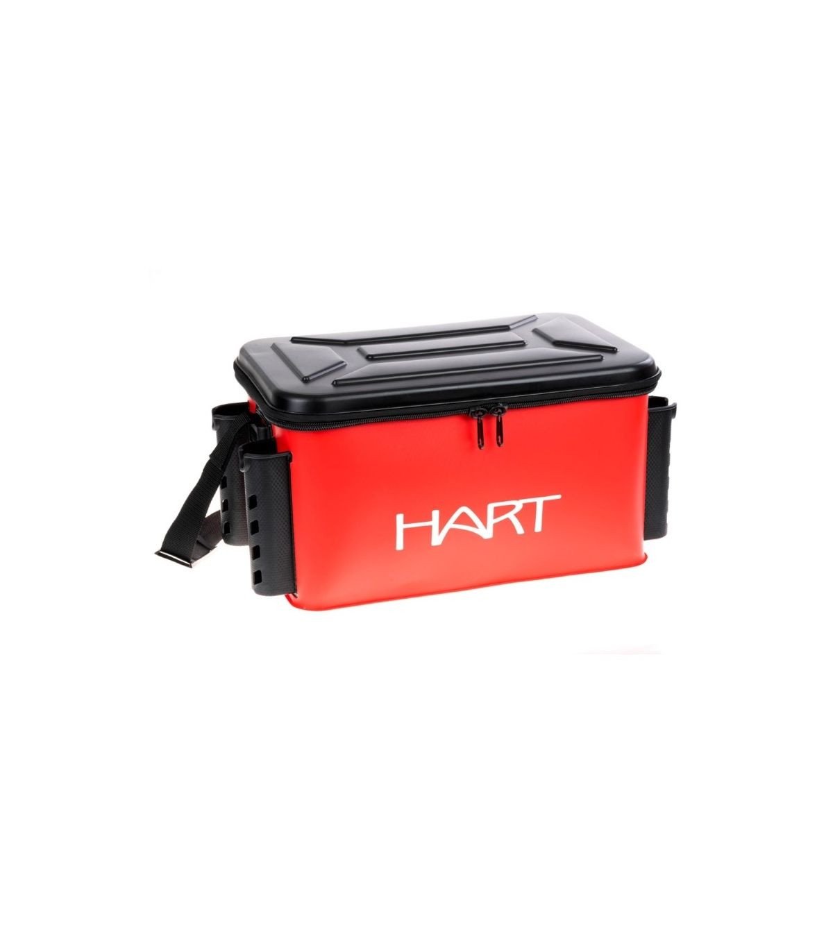 Bolsa HART Hard Keep Box semirrígida de 30 L, fabricada en PVC reforzado, con tapa rígida, 3 cañeros laterales, bolsillo para herramientas y correa de hombro. Resistente, práctica y muy funcional.